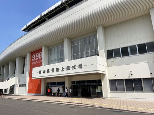 名称:福井県営陸上競技場 種類:陸上競技場 収容:16,000人 公式:https://f-sports.pref.fukui.lg.jp 正面入口からの外観 メインスタンド最上段から ゴール裏から 収容人数は16000人 バックスタンドから 日本初の100m9秒代を記録したスタジアム アクセス…
